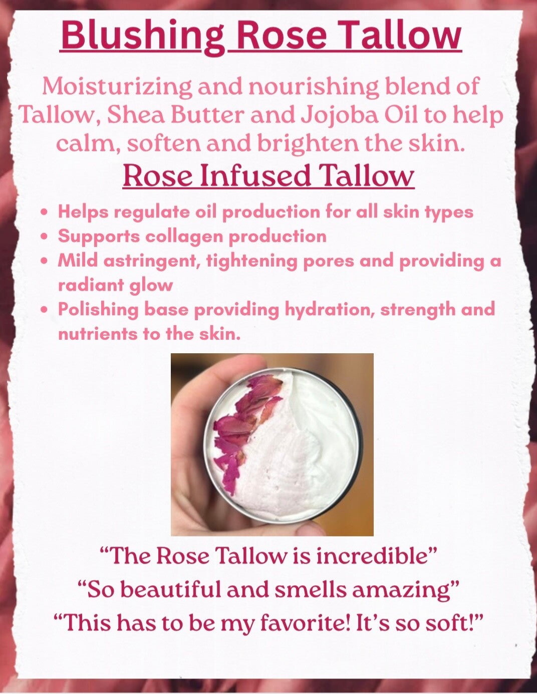Made in small batches with locally sourced tallow from upstate New York, our blends are rich in skin-loving nutrients. Paired with botanical infusions, natural oils, and butters, they deeply nourish, restore, and protect both skin and hair.